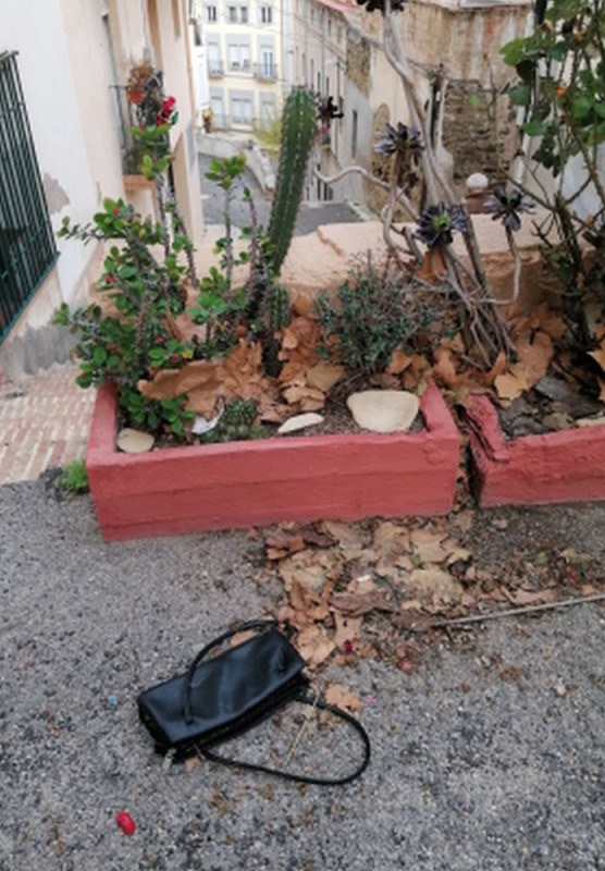 “No! Honest, I would never” the teen stammered. “I found your purse at the top of the steps. I ran all this way to return it to you. See, take a look; one strap is coming loose; you must have dropped it and didn’t even notice with all those bags you’re carrying.”