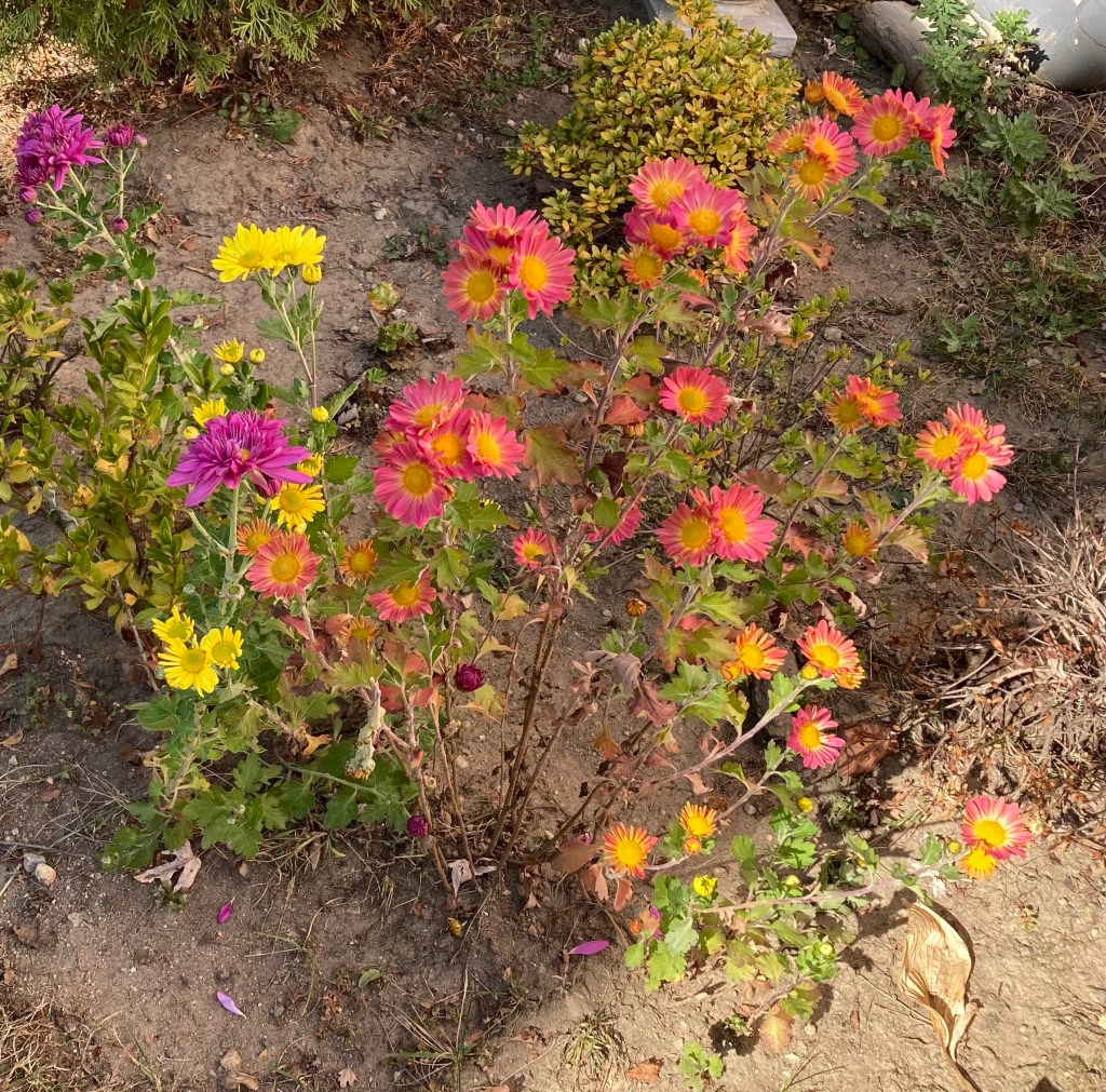 1. It’s dry as hell here and we’re restricted to every other day watering. We watered the day before these pix were taken and you can see how parched the soil is. It dried up drastically in just one day. We’ve had hot temps and no rain for over one month. It’s awful. Those flowers are incredibly resilient!
