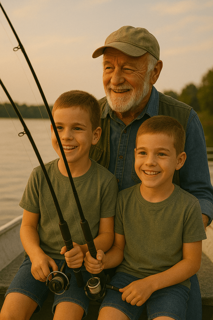 twin fishing with their Pops, this is my quadrille