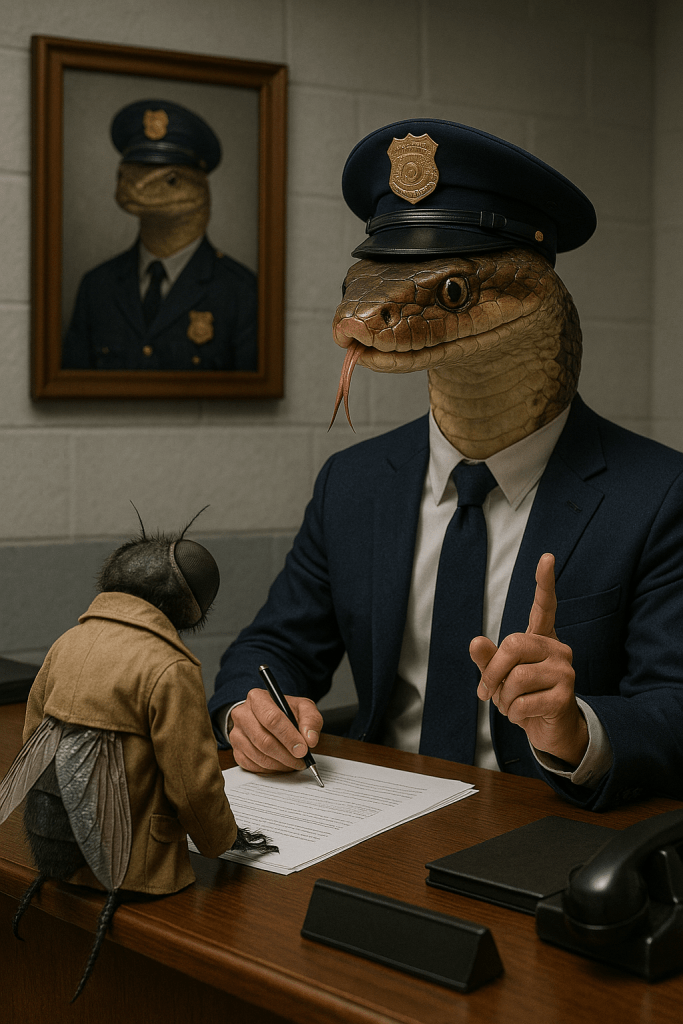 In sibilant whispers, the chief ophidian operative advised extreme circumspection when infiltrating the entomologist’s forces. “I mussst insssissst on utmossst dissscretion. Proccceed with sssupreme caution. Sssubtlety isss paramount for sssuccess! Are we clear, Agent Ssseventy-ssseven?”