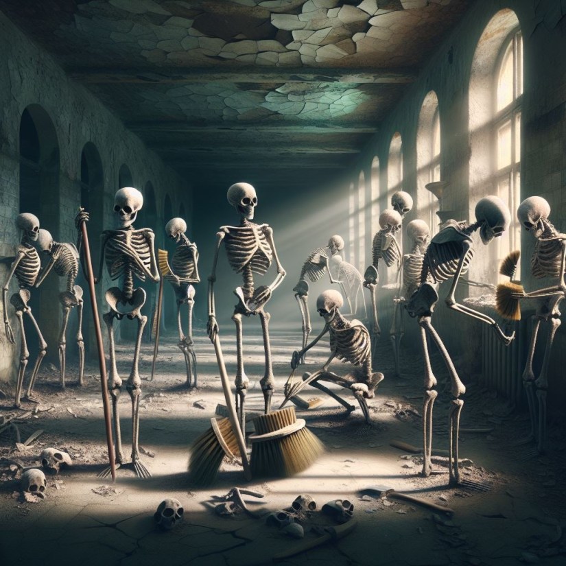 Skeletons woke, a silent crew