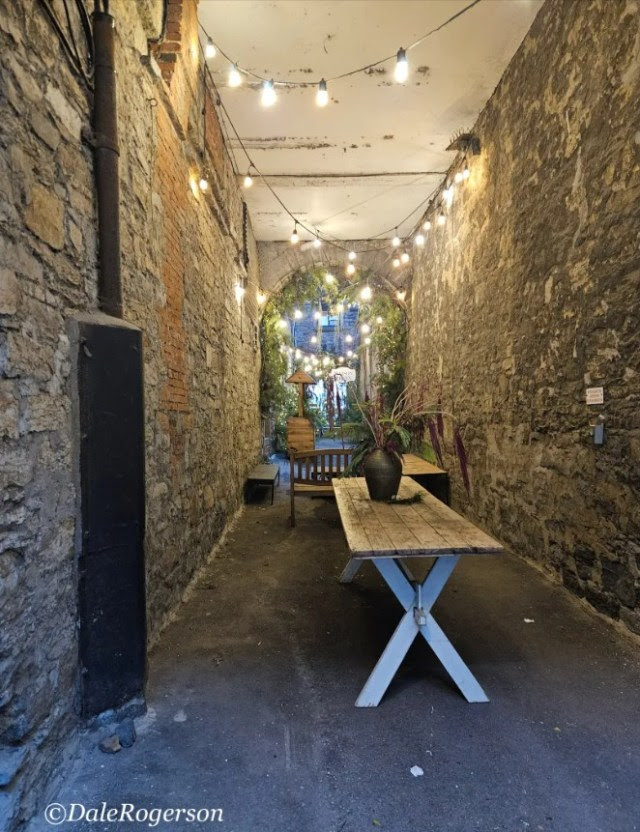 The wedding planner surveyed the abandoned passageway with satisfaction. Tiny sparkling Christmas lights would transform these weathered brick walls into something enchanting. The reclaimed wood table stood ready, its X-frame legs steady on concrete that had known decades of neglect.