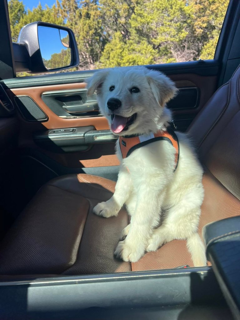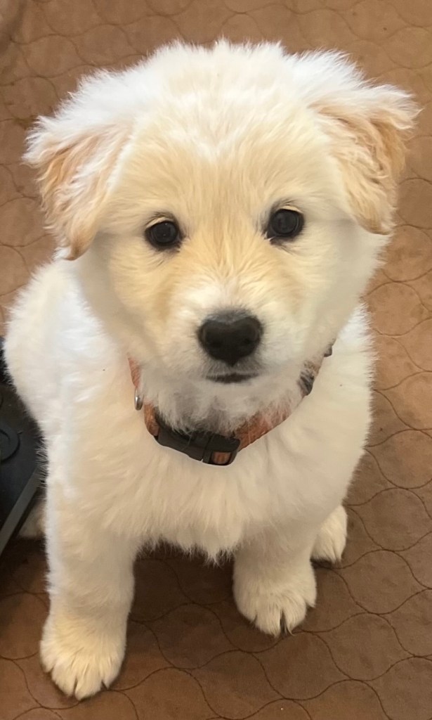 Say hello to Willow …. our newest grand-doggie! She is a rescue from Texas and Colette’s first dog. Her mama is 1/2 Golden Retriever and 1/2 German Shepherd. Papa was a rolling stone and the foster parents don’t know anything about him but they believe he was all or part Pyrenees Mountain dog. She’s a real cutie!