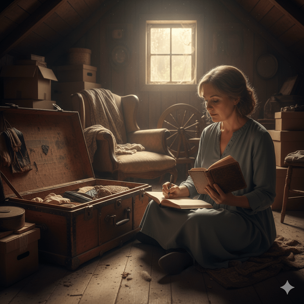 She found her late mother’s notebook in the attic; the pages had turned yellow and brittle.