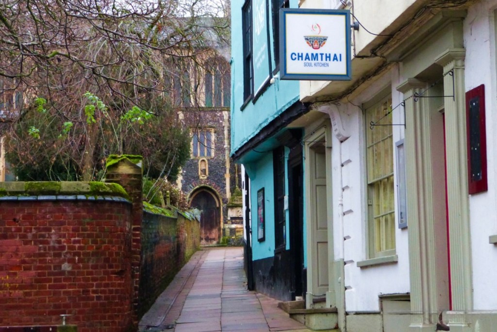 The alley had grown narrower over many decades, buildings leaning together like gossiping neighbors. Geeta walked the moss-slicked path every day, past Chamthai’s cheerful sign, past the red-shuttered windows, toward the ancient church door at the end.