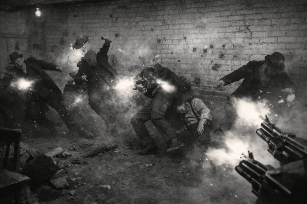 “Capone’s boys,” his partner muttered, lighting a Lucky Strike with shaking hands.