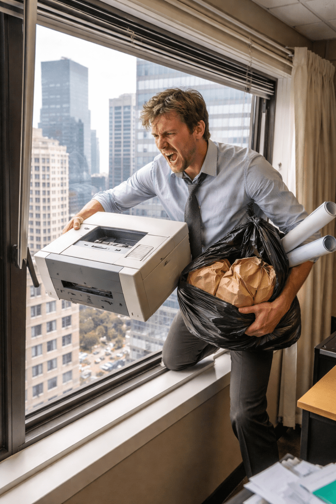 Dave had endured many things at the office: Karen’s sardine lunches, Bob’s motivational posters, the printer that jammed every Friday just before the big report was due.