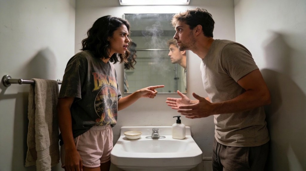 He appeared in the doorway, rumpled, beautiful, already constructing his face into something innocent. “Hey, babe.”