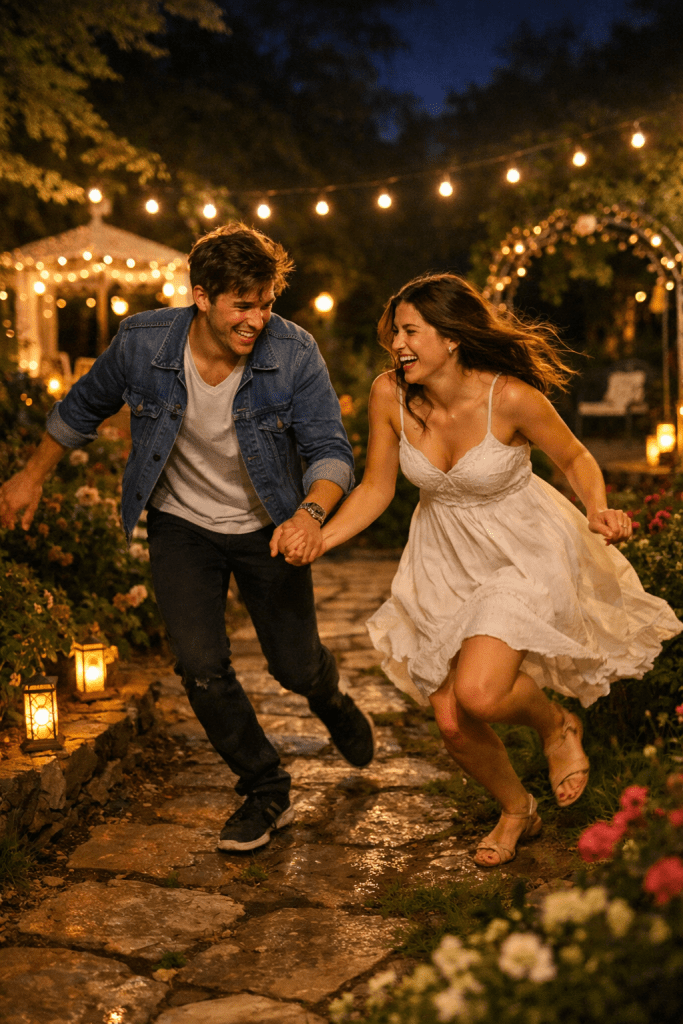breathless and laughing,