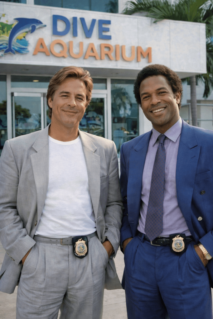 Detectives Crockett and Tubbs surveyed the scene, eyeing four suspects: the conga dancer, the umpire, the recording engineer, and the shark trainer.