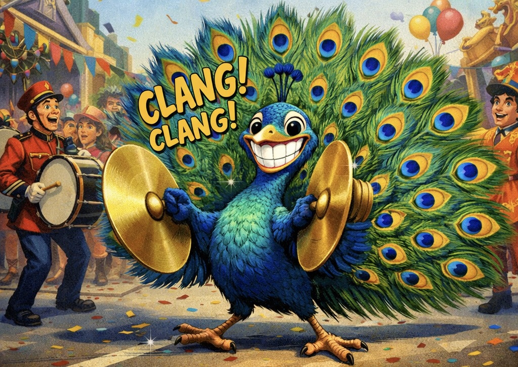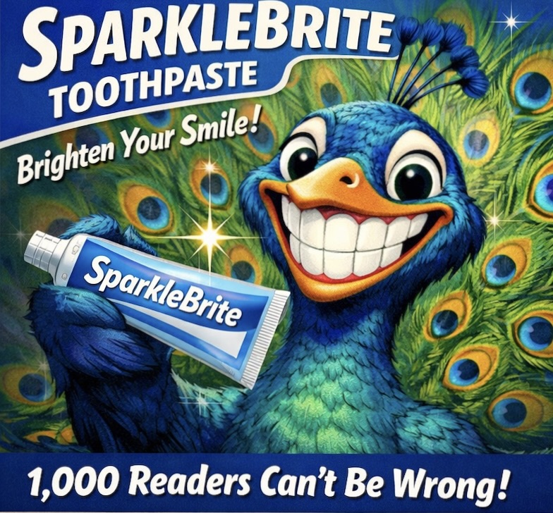 Percival Peacock published a newsletter no one read. One morning, desperate for subscribers, he crashed a parade …. cymbals clanging, tail fanned wide. A toothpaste company noticed and hired him instantly. His smile, finally, was worth a thousand readers.