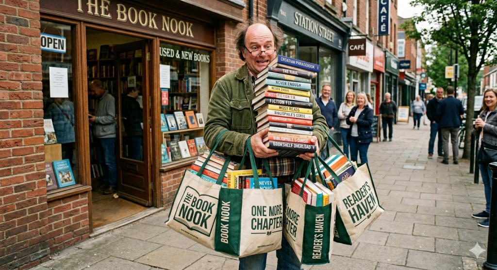 “It started small,” he continued. “One bookmark. Then three library cards. Now I can’t leave a bookshop without purchasing something. I reasoned I’d give the books as gifts, but I was lying to myself. Last Tuesday I bought a Croatian phrasebook. I don’t speak Croatian. I have no plans to visit Croatia.”