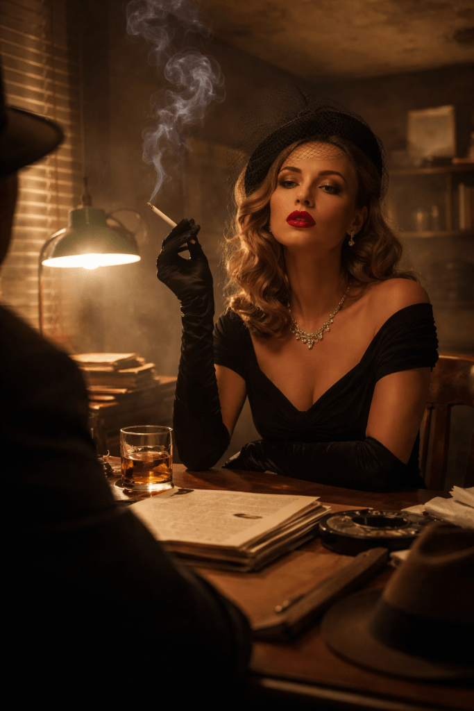 “Mr. Malone, I’m Beverly Bennett” she said, as if that was supposed to mean something to me. Her voice had that practiced hollow quality, the kind that leaves space between words for lies to breed and grow. She slid into the chair across from my desk, black gloves peeling a cigarette from her case with elegant precision.