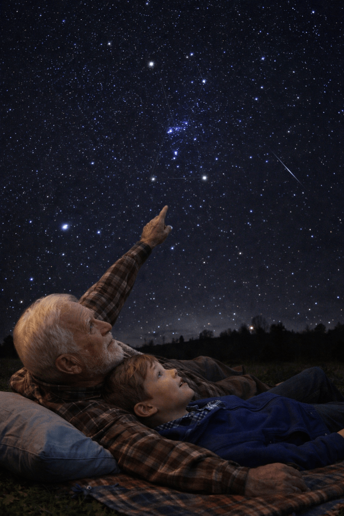 “See those three?” Grandpa raised a weathered finger. “Orion’s belt.”