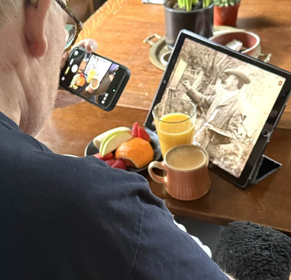 Every morning, the same ritual. Coffee, fruit, juice, and Great-grandpa Ernest propped up on the iPad, presiding over the table like he always did. The old B&W photo was taken sometime in the ‘40s, brush in hand, squinting at whatever he was painting that day. Nobody remembered the painting but everyone remembered that squint.