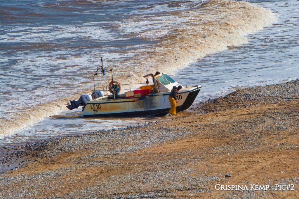 He stepped out into the foam, boots already soaked, and took the bow rope in both hands. The next wave helped …. grudgingly …. pushing the hull another foot up the beach.