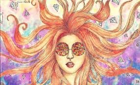 George reached into his pocket and took out a teeny pair of pink glasses. He delicately balanced them on my little beak. “Perfect! The Girl With Kaleidoscope Eyes! Let’s go introduce you to Ringo and we can’t forget to bring the Honey Pie! Ringo loves it so!”
