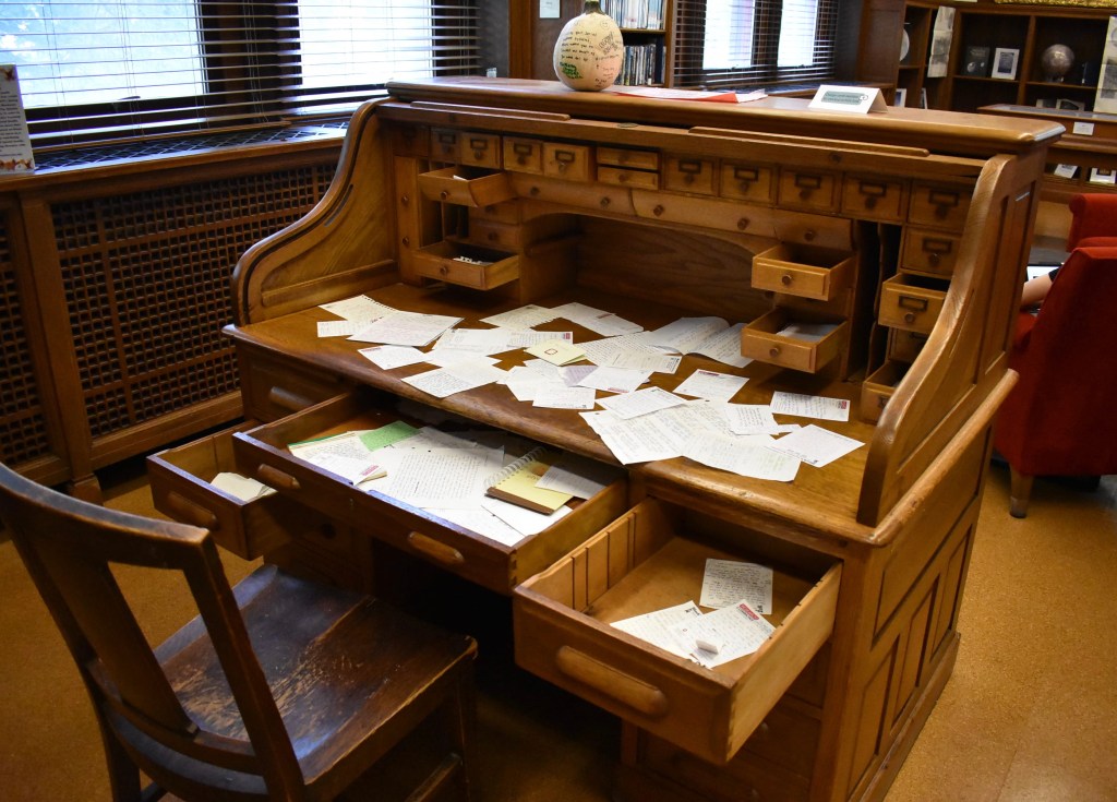 “Yes but today’s session was cancelled because our math teacher had a meeting. But what I’m doing here isn’t nearly as interesting as what you’re doing here in Dad’s study.”