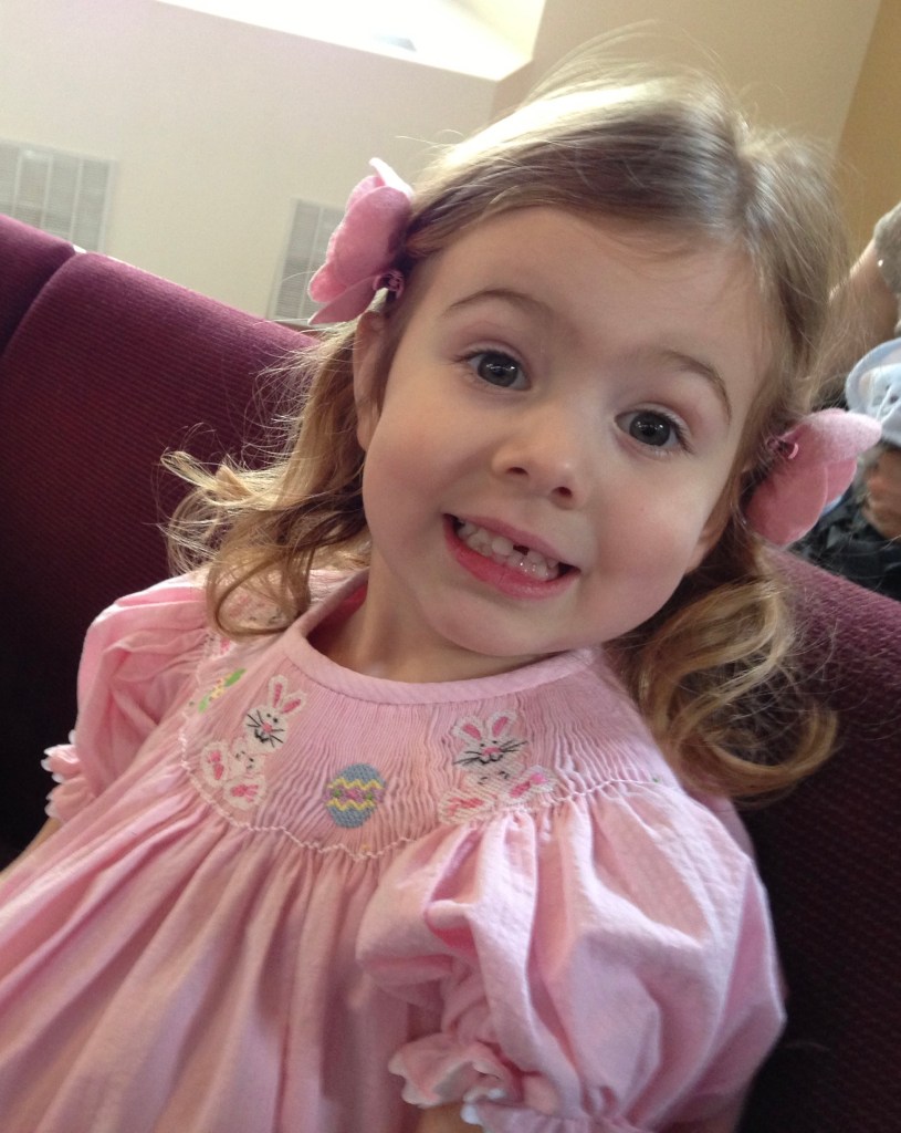 She is Colette, our perfect 28-month-old granddaughter, with the face of an angel and the determined heart of a lion.