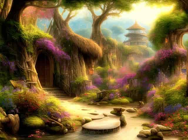 When Rumpelstiltskin’s little cottage went on the market after he was banished from the forest, the gnomes quickly acquired it and put the good fairies Flora, Fauna and Merryweather to work sprucing up the place with their special magic touch. In no time the romantic hideaway was ready for Snow White and Doc; they bid farewell to the 6 dwarfs and took up residence in their very own love shack.