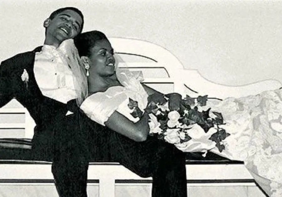 Much like the Clintons, the Obamas met each other while working at Sidley Austin law firm of Chicago. Michelle refused numerous dinner invitations from Barack but finally relented in 1989; three years later they were married at Trinity United Church of Christ in Chicago. She wore a white gown with tapered tip sleeves on her shoulders alongside a traditional veil. The husband and wife shared a dance to โYou and Iโ by Stevie Wonder.