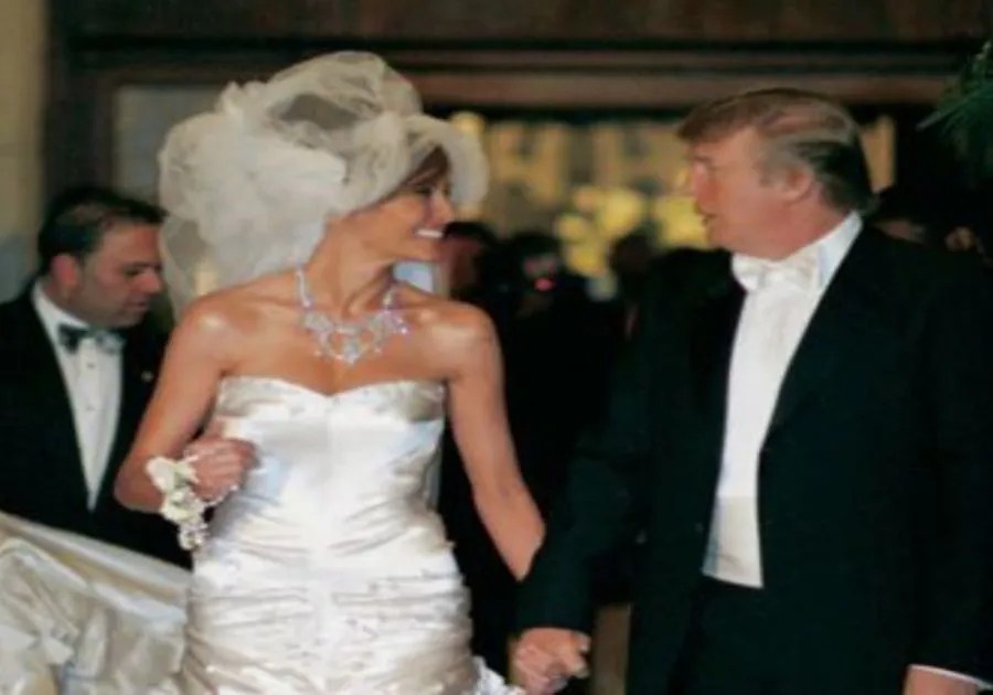 In 2005, Melania Knauss married Donald Trump. Her dress was designed by Dior and featured 300 feet of tulle with over 1,500 pearls and rhinestones. Her dress, weighing near 60 pounds, took over 600 hours to complete and is estimated to have cost $150,000. It was so heavy and cumbersome that it was suggested to Melania that she should have a full meal before the ceremony to be able to have enough energy to carry around the dress. Oh, my aching back!